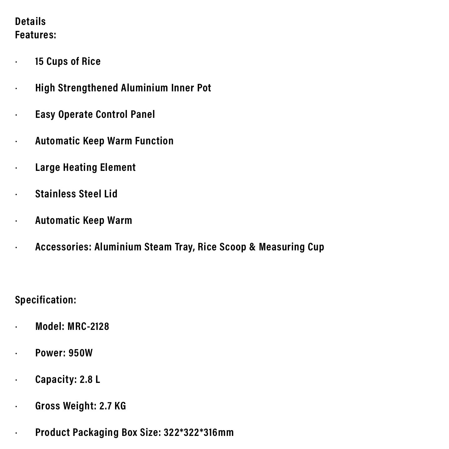 Buy Milux 1.8L Rice Cooker (MRC-2118). Includes steam tray & 1.8L capacity. Original 1 Year Warranty. Shop now.