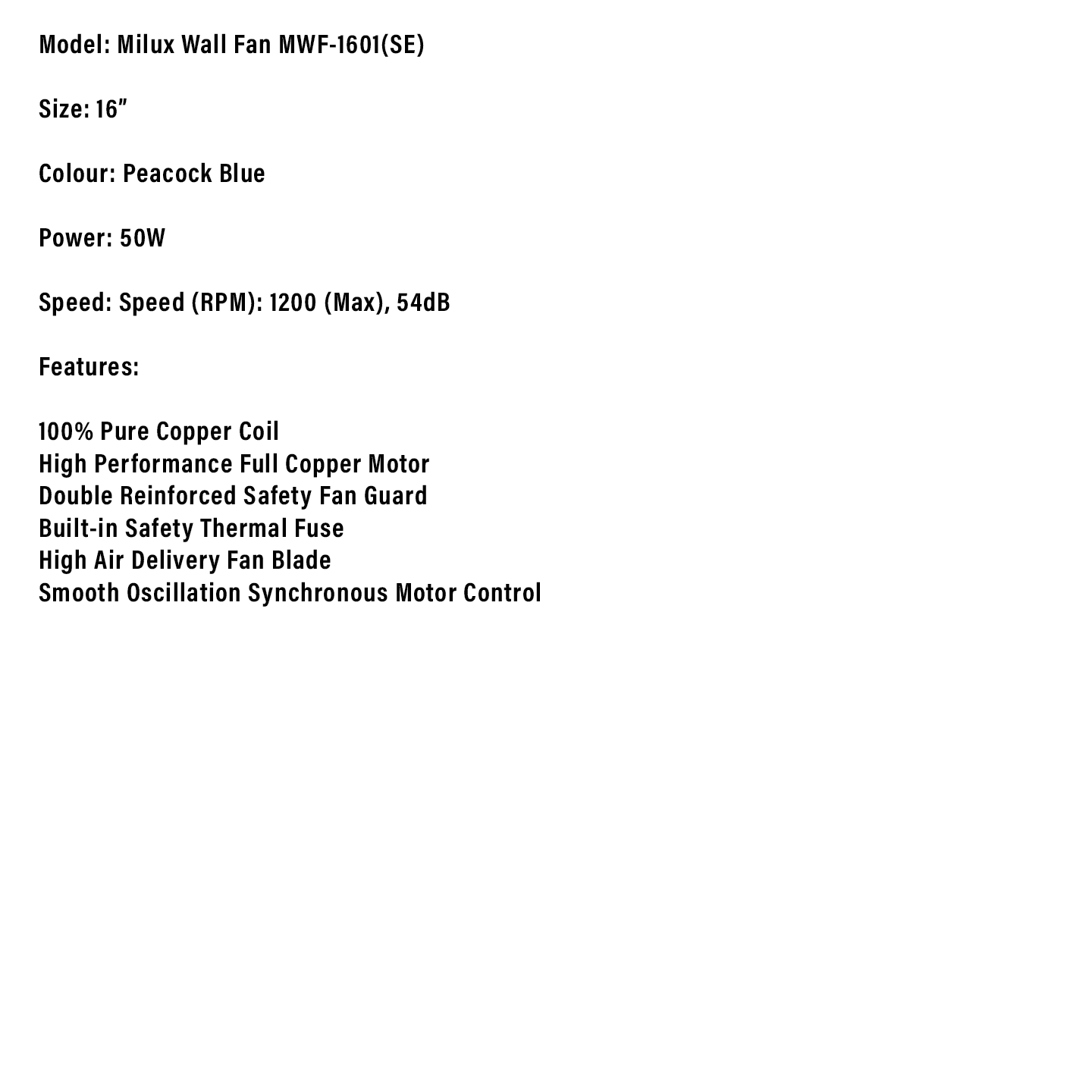 Buy Milux 16" Wall Fan (MWF-1601 SE). Features pull cord control & oscillation. Original 1 Year Warranty. Shop now.