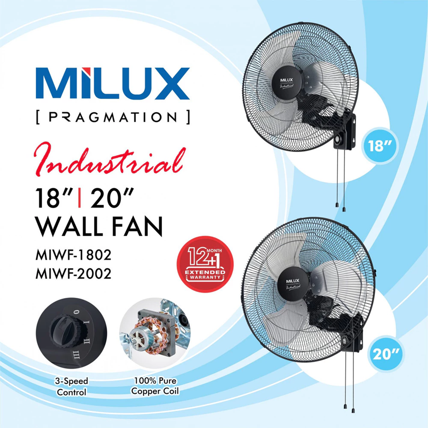 Buy Milux 18" Industrial Wall Fan (MIWF-1802). Features sturdy wall mount & metal blades. Original 1 Year Warranty. Shop now.