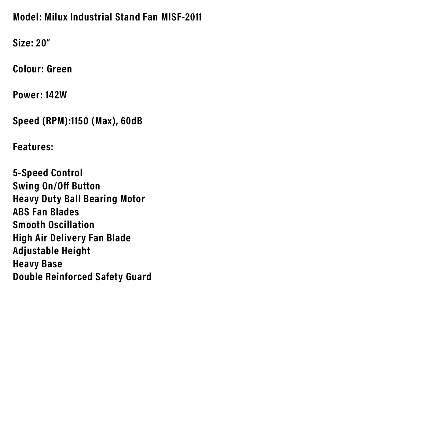 Buy Milux 20" Industrial Fan (MISF-2001). Features powerful air delivery & stable base. Original 1 Year Warranty. Shop now.