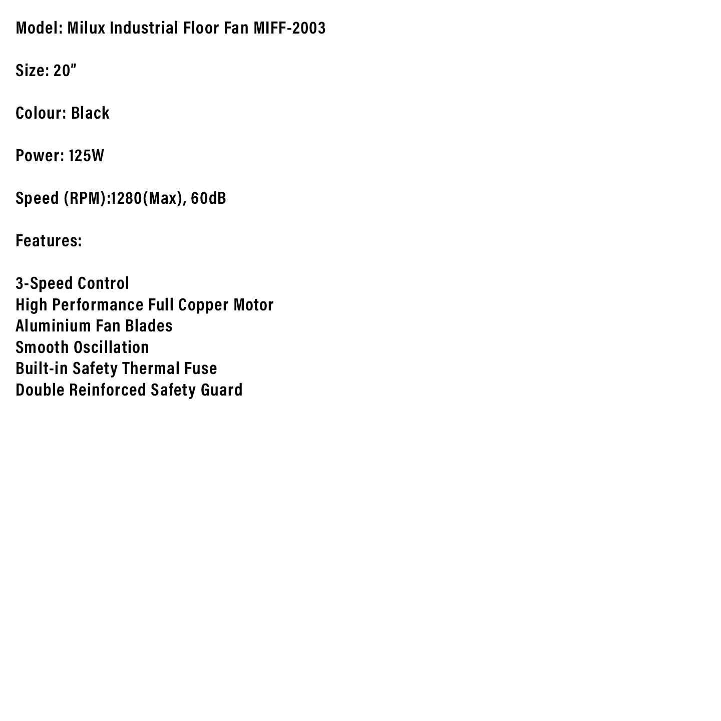 Milux 20" Industrial Floor Fan (MIFF-2003)