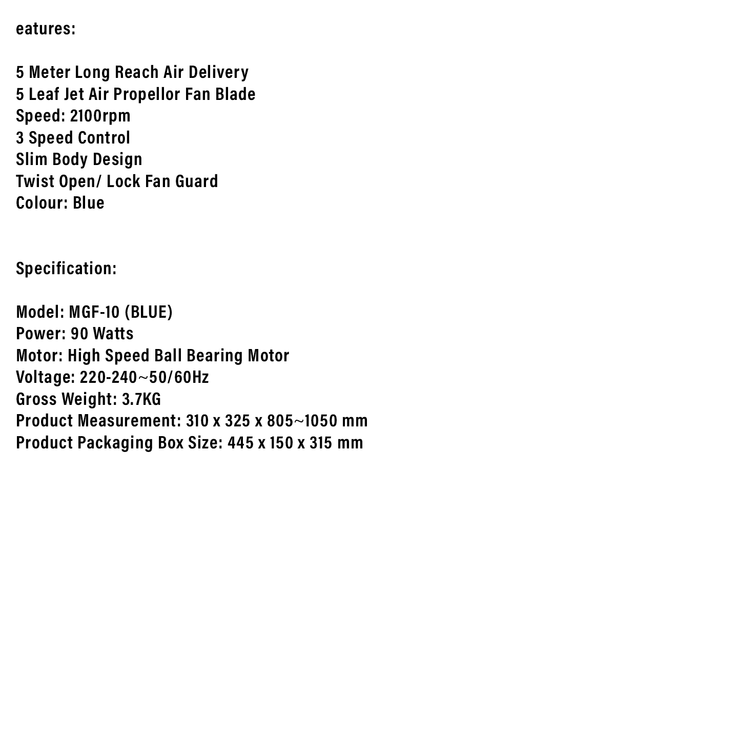 Buy Milux 7" Gale Stand Fan (MGF-10) Blue. Features strong wind turbo motor. Original 1 Year Warranty. Shop now.