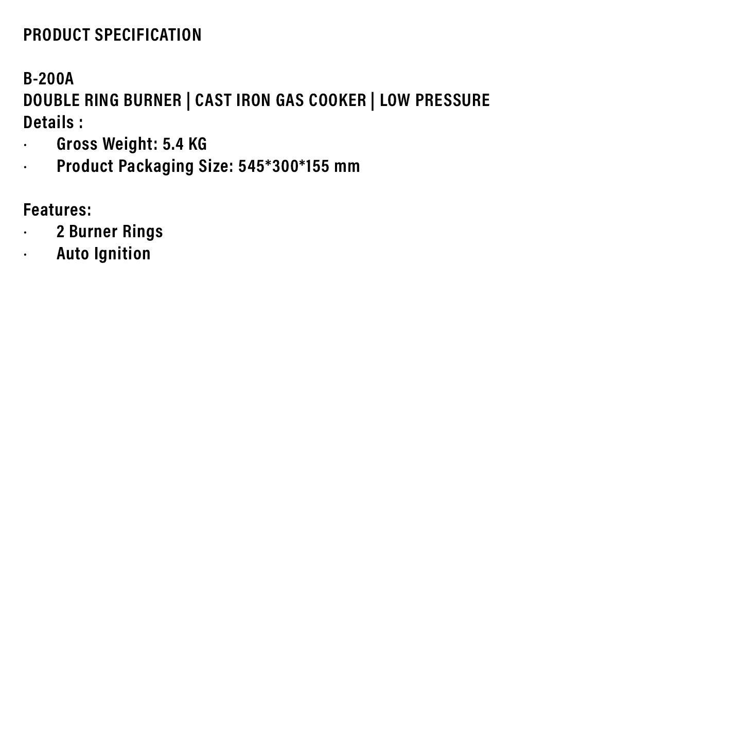 Milux High Pressure Cast Iron Gas Cooker (B-200)