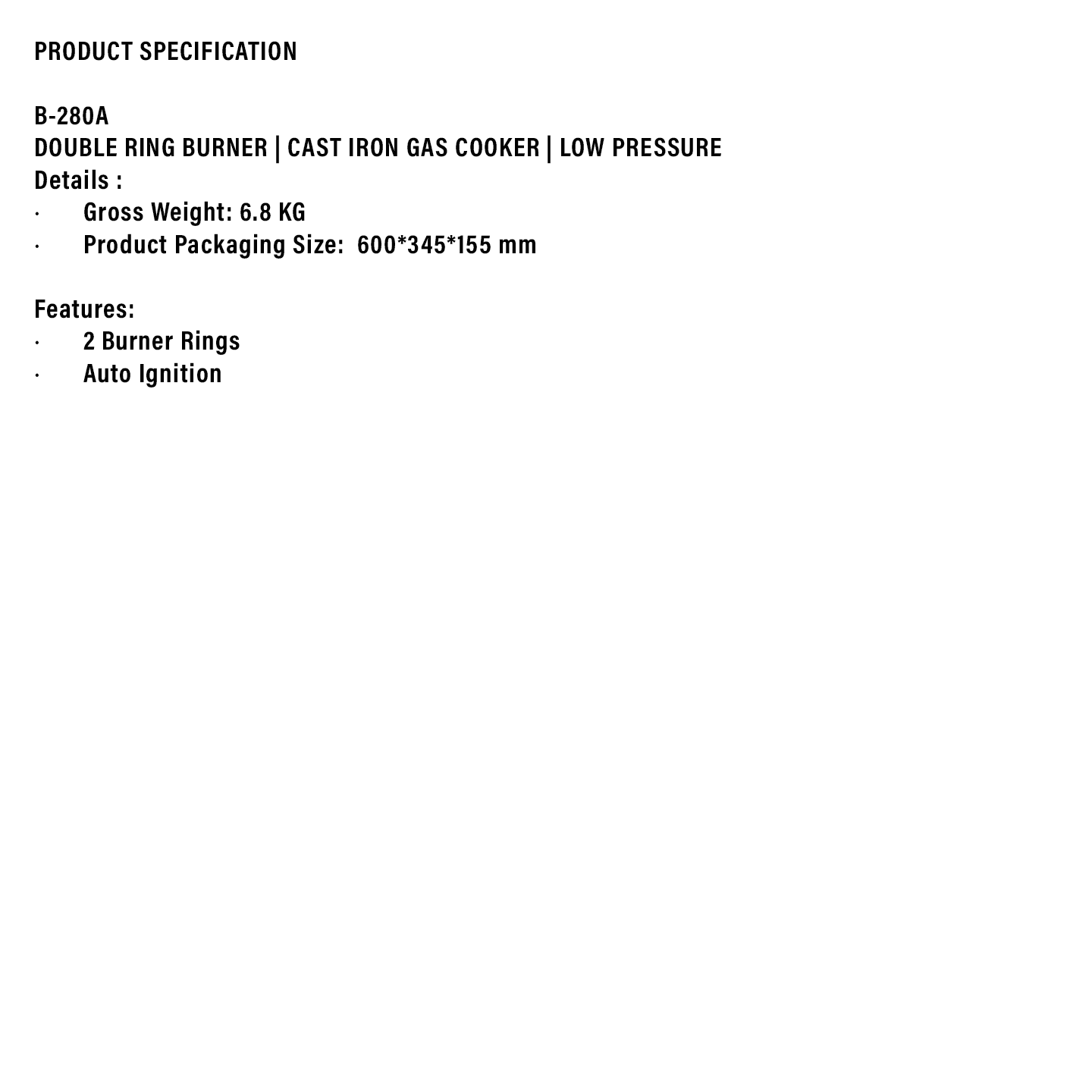 Milux High Pressure Cast Iron Gas Cooker (B-280)