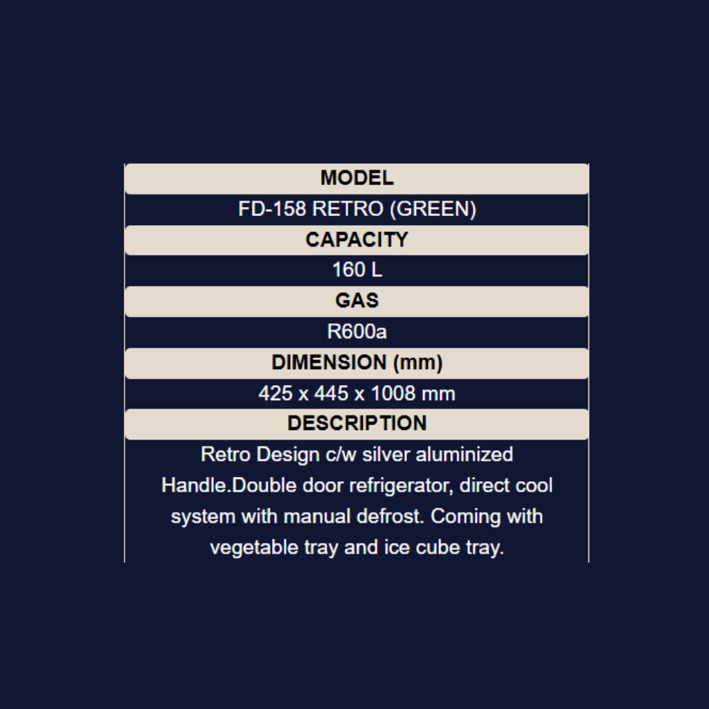 Nakama 160L Double Door Retro Refrigerator (Green) FD-158