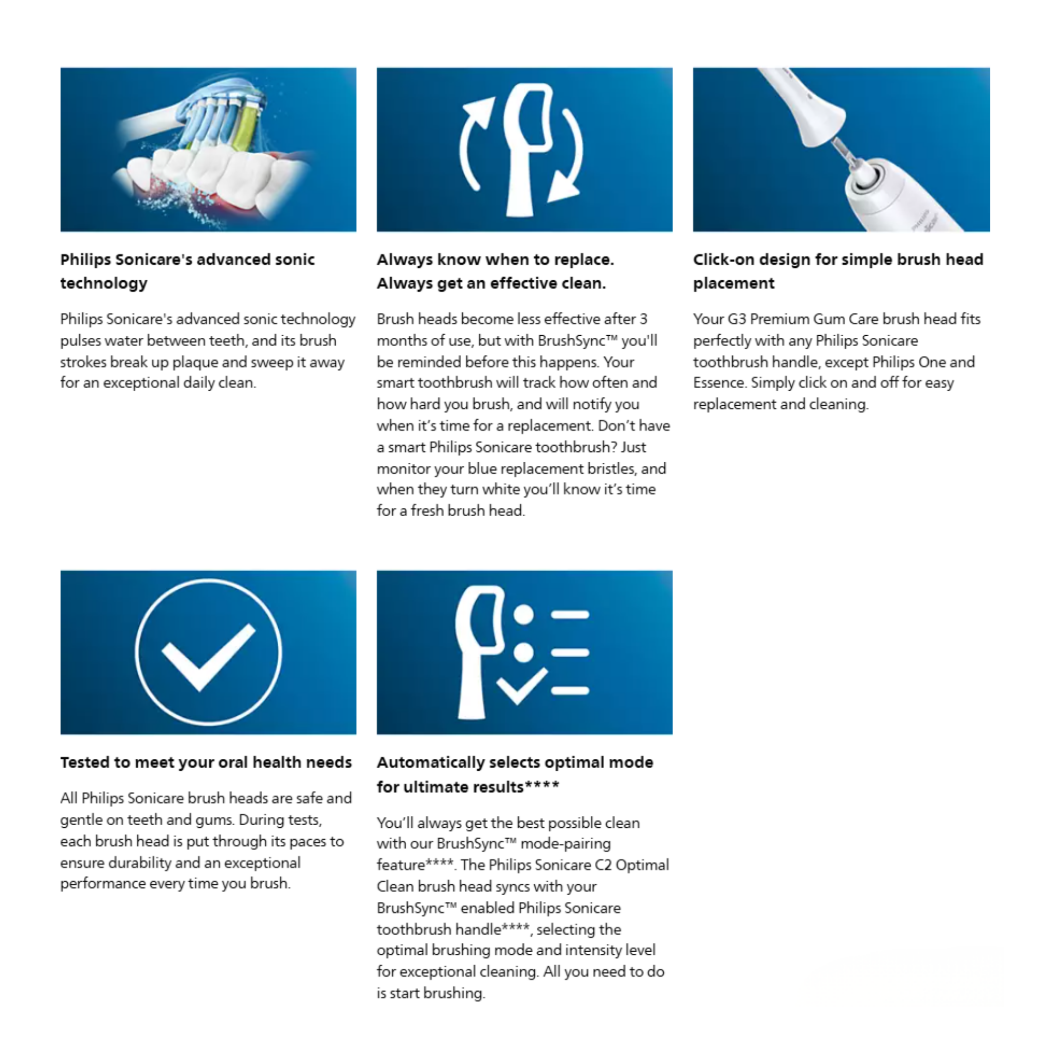 Buy Philips Sonicare G3 Heads HX9052/67 for healthier gums. Features flexible sides. Genuine replacement & best price. Shop now.