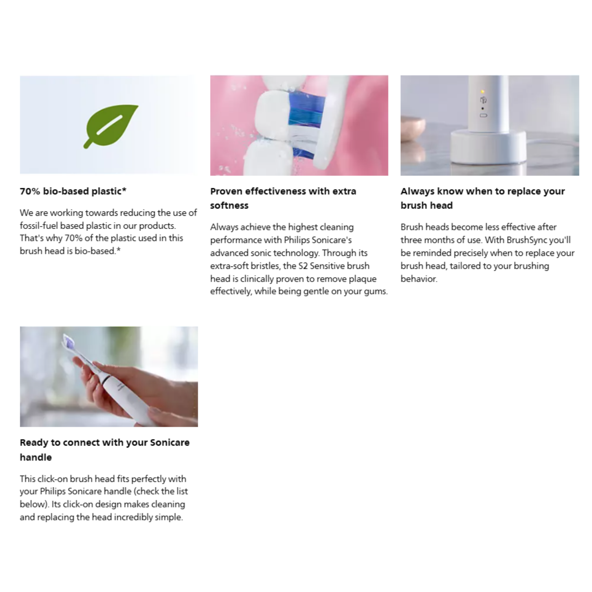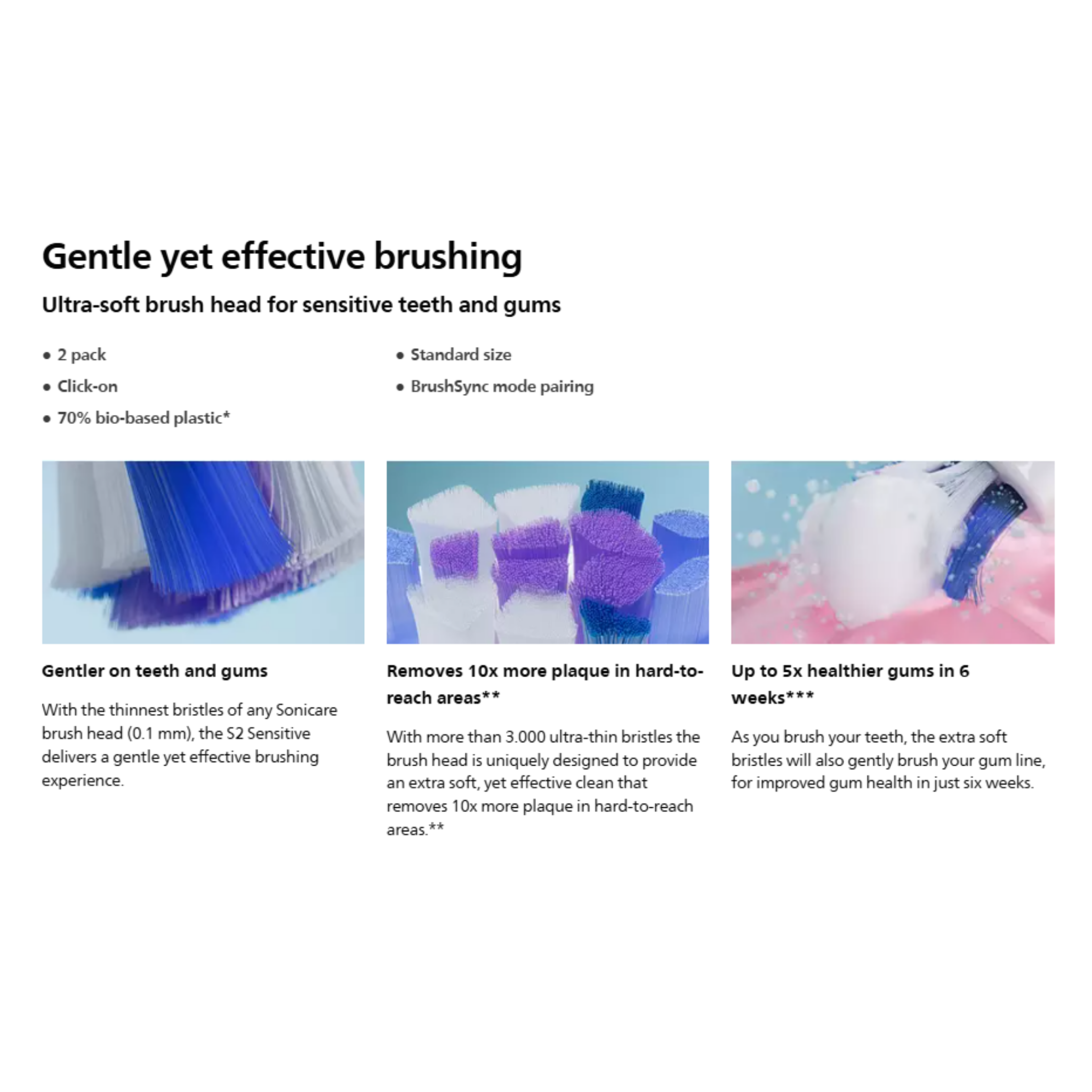 Buy Philips Sonicare S2 Heads HX6052/93 for sensitive teeth. Features ultra-soft bristles. Genuine replacement & best price. Shop now.