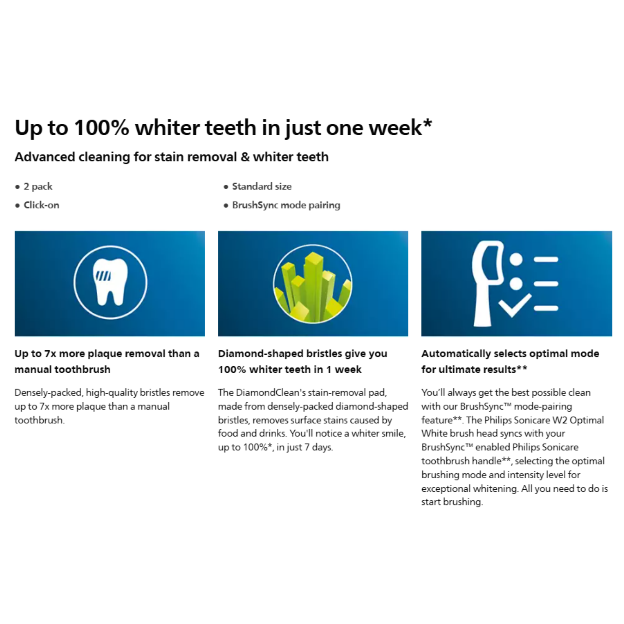 Philips Sonicare W2 Optimal White Standard Toothbrush Heads 2pcs (HX6062/67)