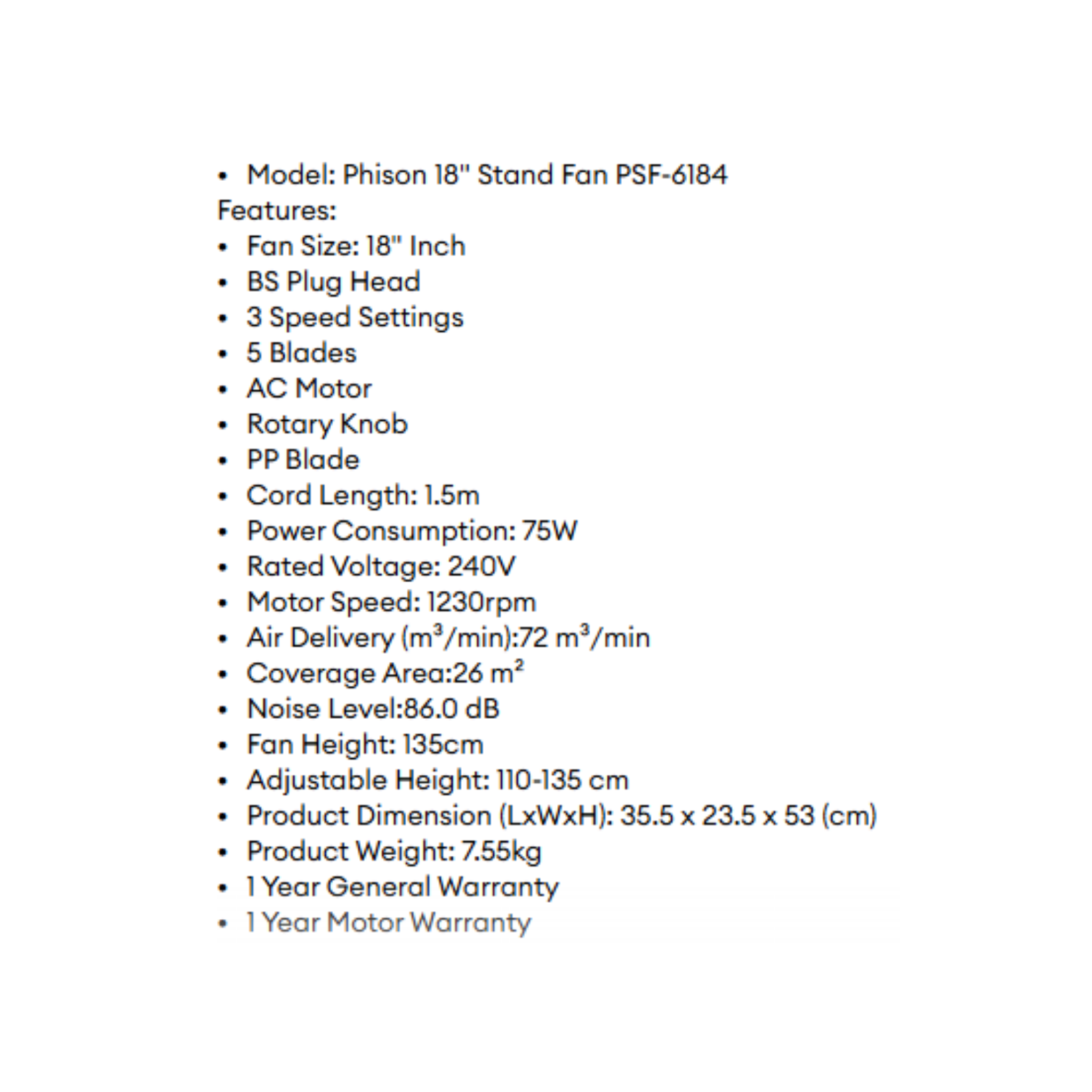 Phison 18" Stand Fan PSF-6184. Efficient cooling for large halls with 3-speed settings. 1Y Warranty. Trusted performance. Buy online today!