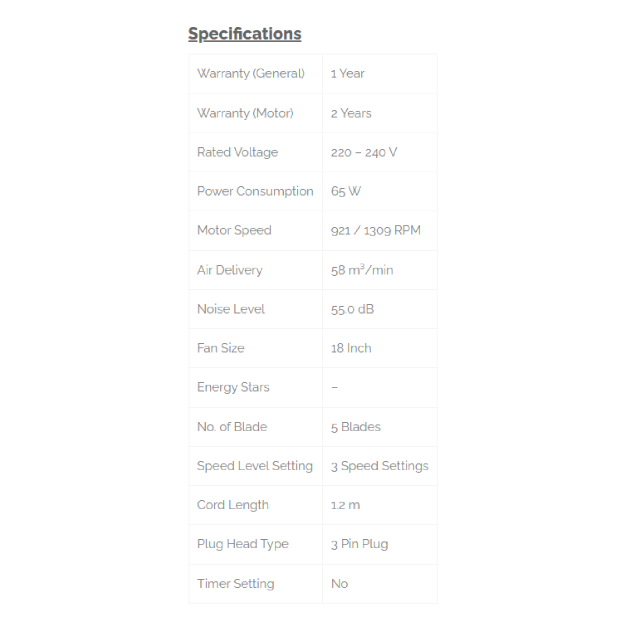 Phison 18" Table Fan AC Motor PTF-18