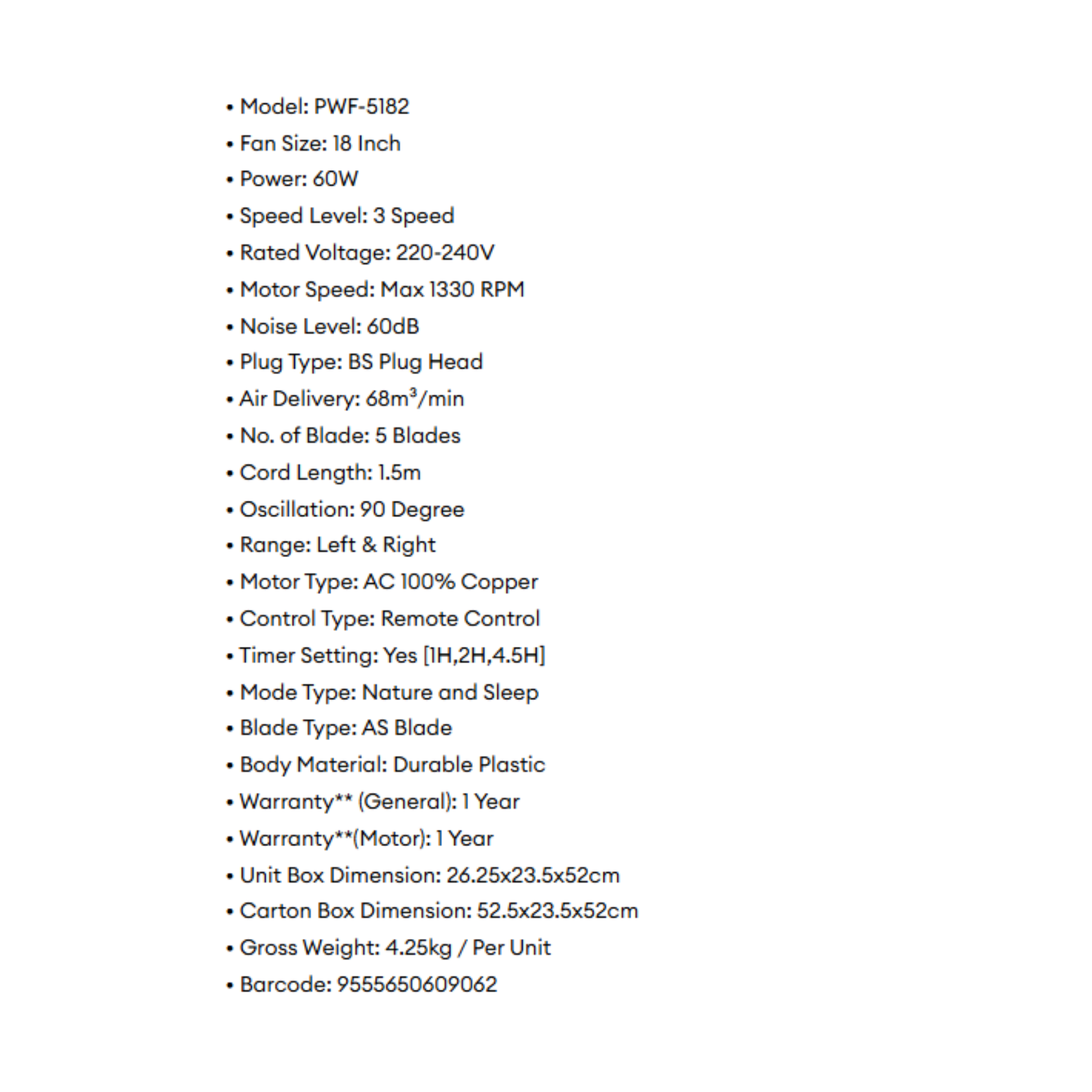 Phison 18" Remote Control Wall Fan PWF-5182