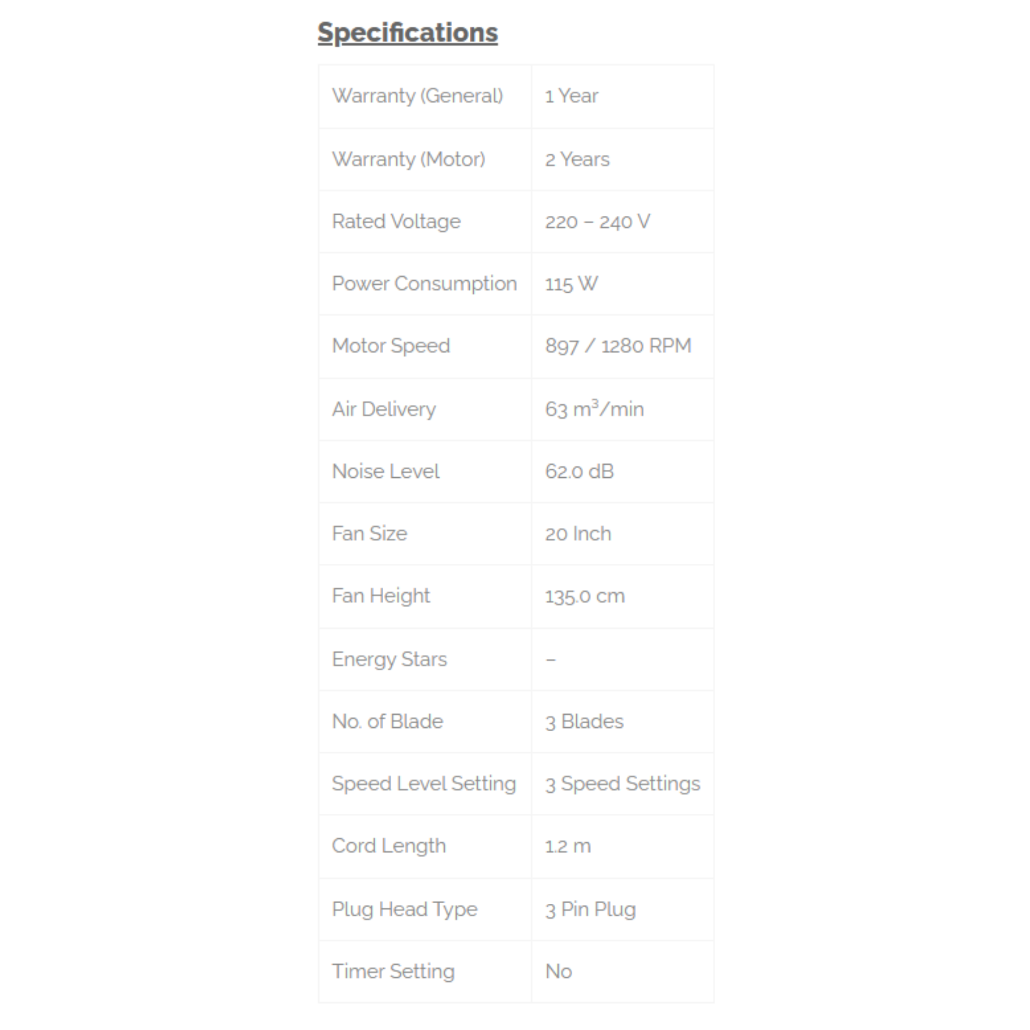 Phison 20" Stand Fan PSF-20G. Robust metal grill. 1-Year Warranty. Fast delivery.