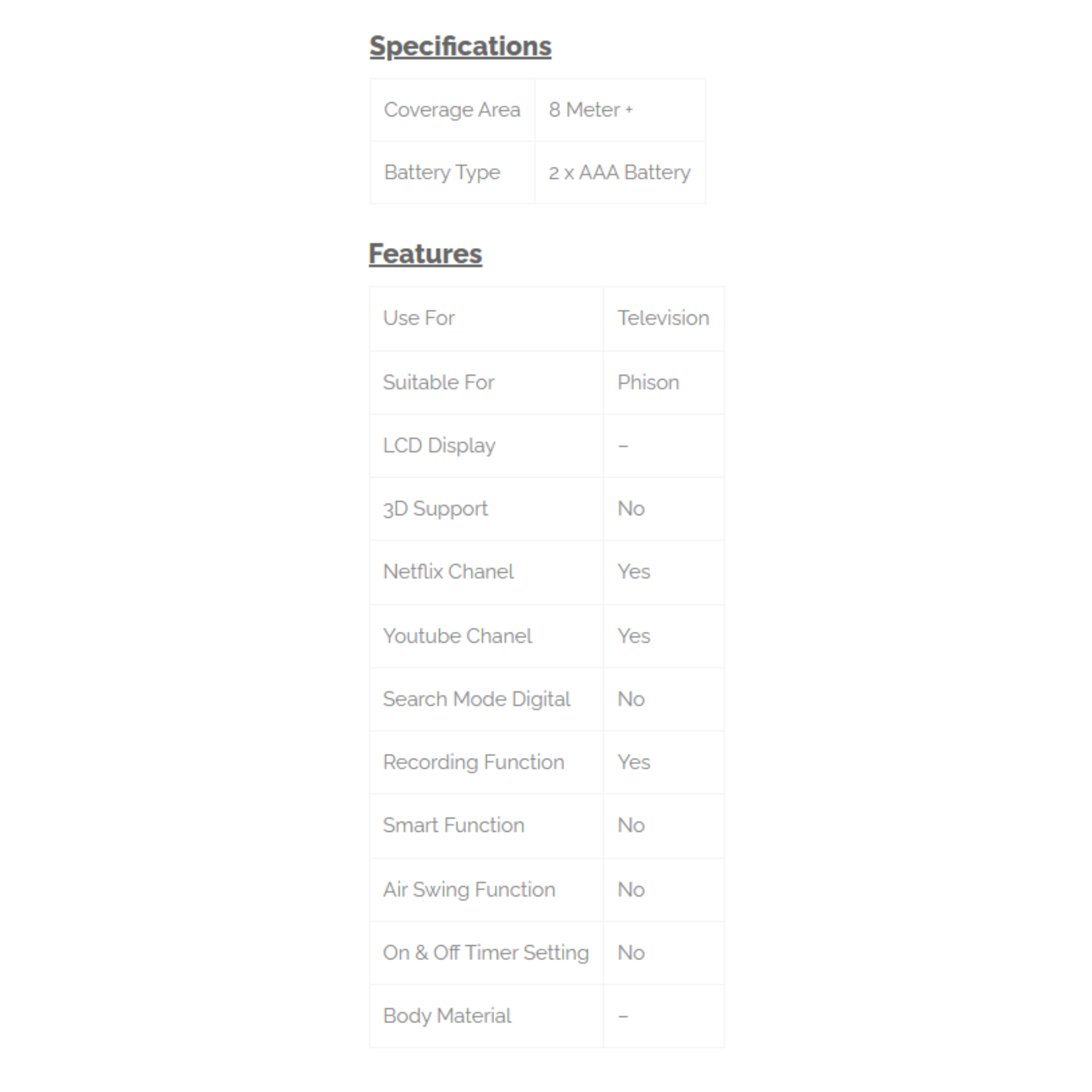 Phison E-Series Smart TV Remote Control PR-213