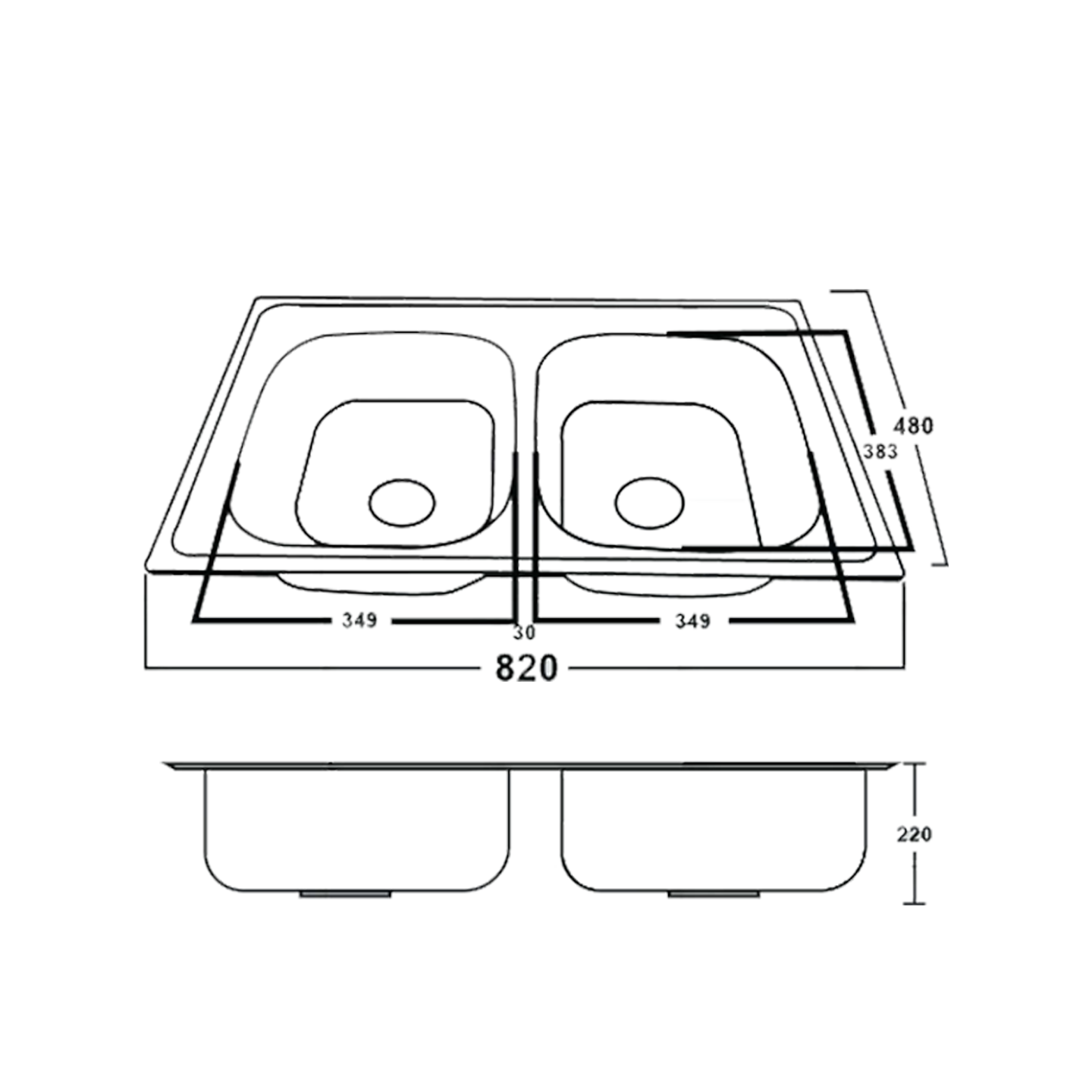 Rabico Polish Stainless Steel Double Bowl Kitchen Sink (8248Sr#) W6-03