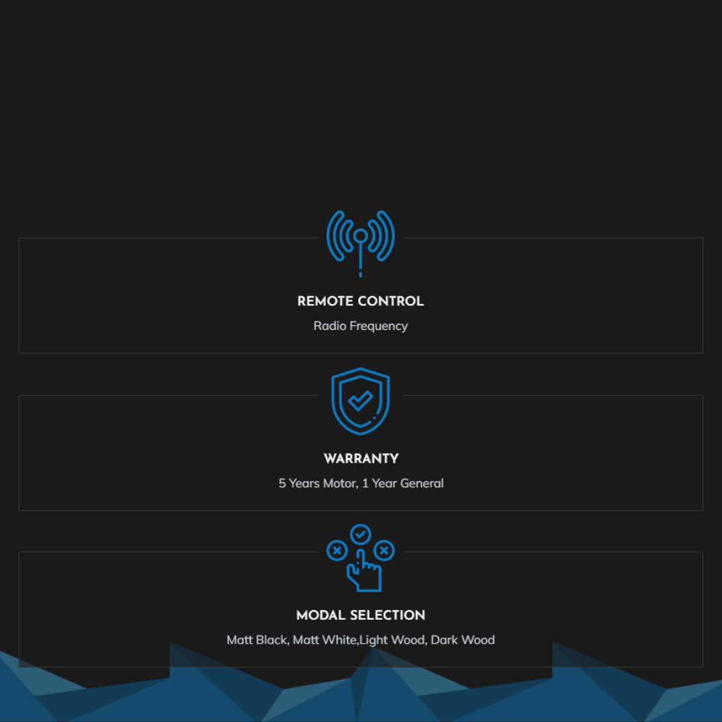 Available Colours: Dark Wood, Light Wood, Matt Black, Matt White
