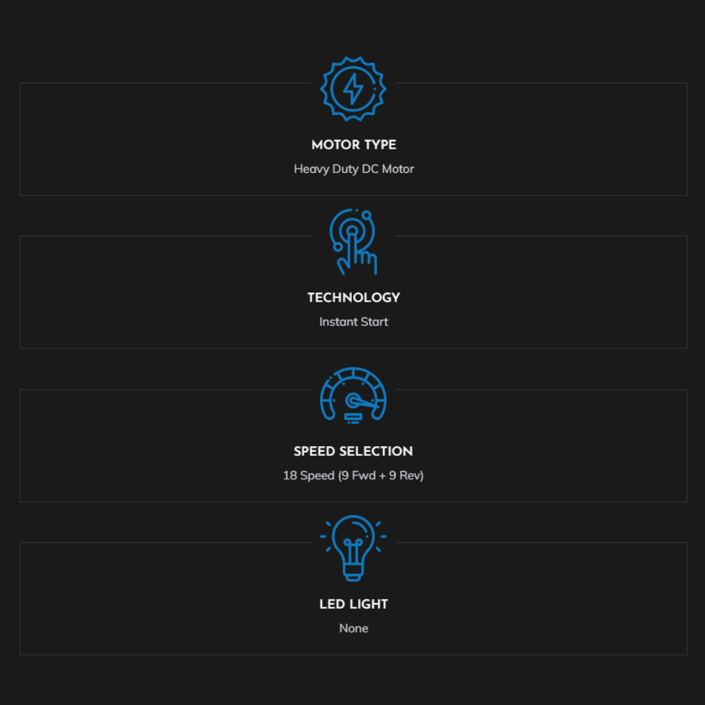 Speed Settings: Multi-Speed (Forward/Reverse)