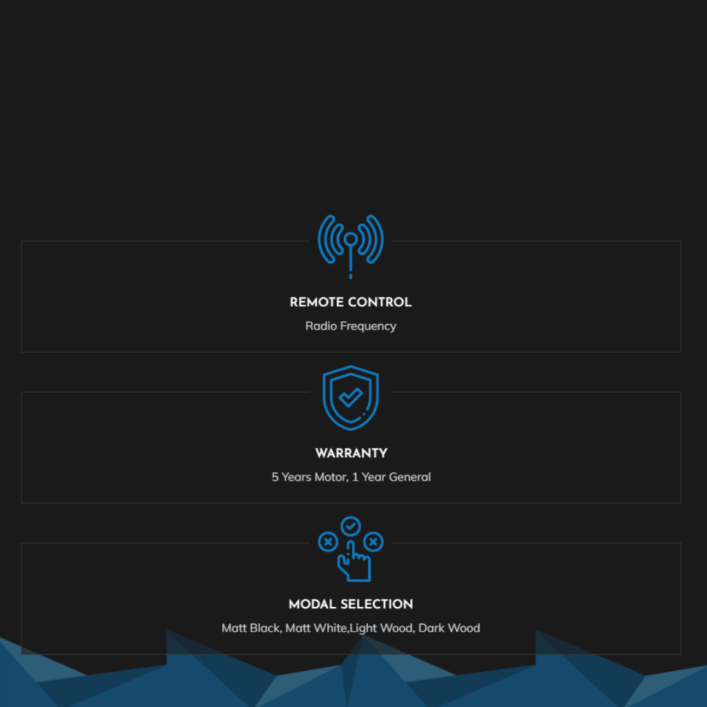 Available Colours: Dark Wood, Light Wood, Matt Black, Matt White