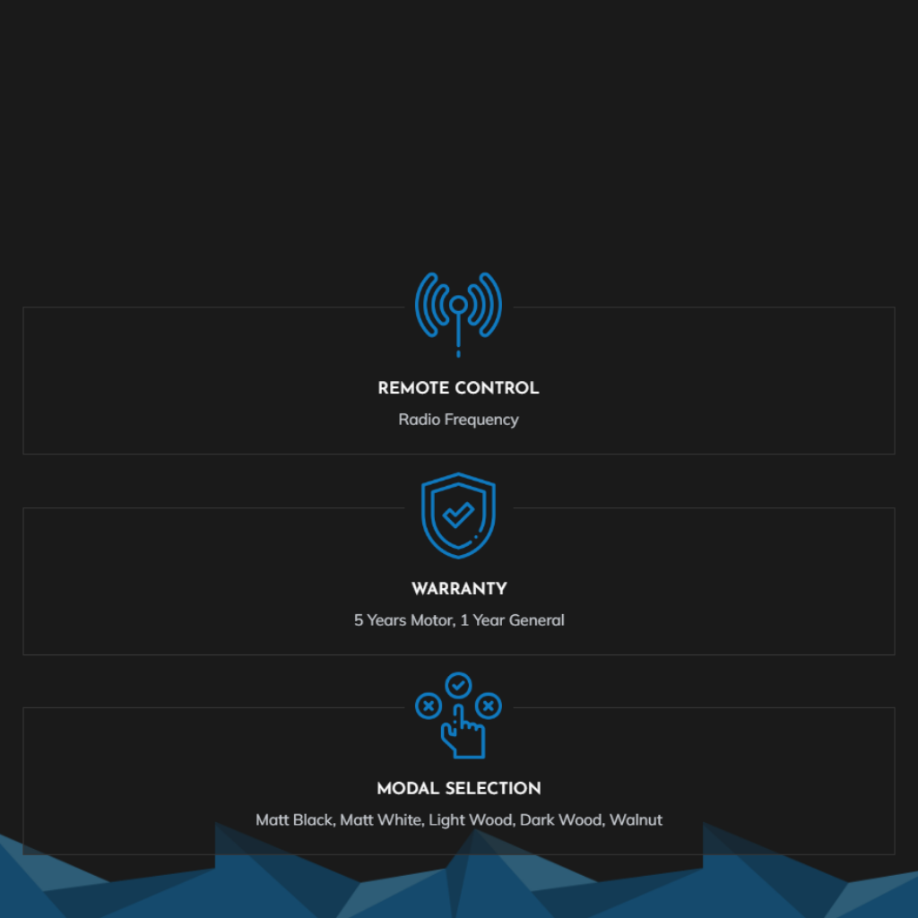 Available Colours: Dark Wood, Light Wood, Matt Black, Matt White, White Maple, Walnut