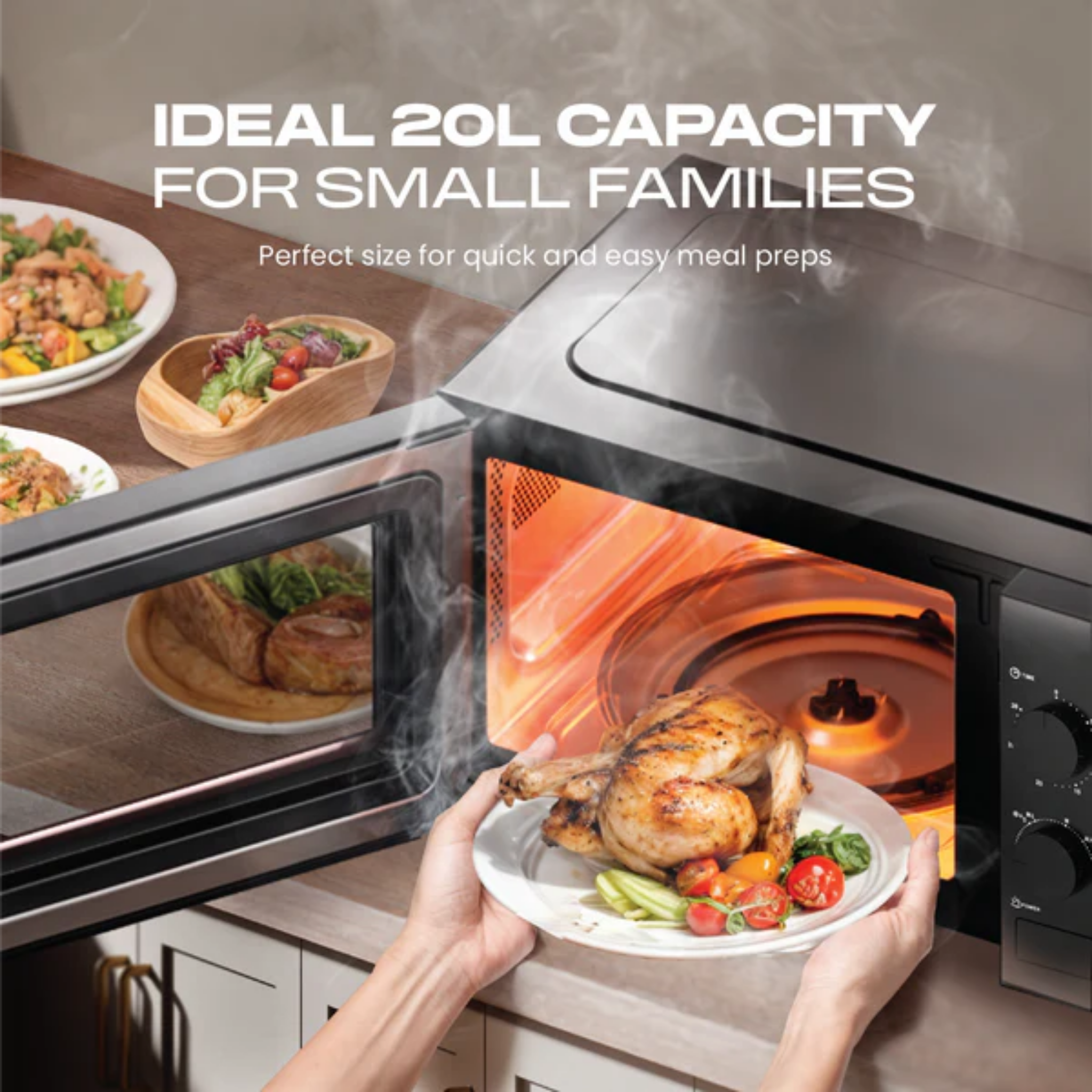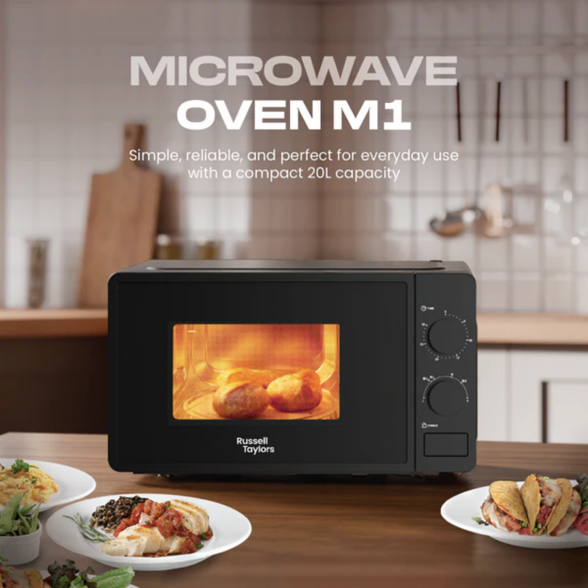 Buy Russell Taylors Microwave Oven Black (M1) with sleek design. Features 20L size & rotary controls. Original 1 Year Warranty & best price. Shop now.