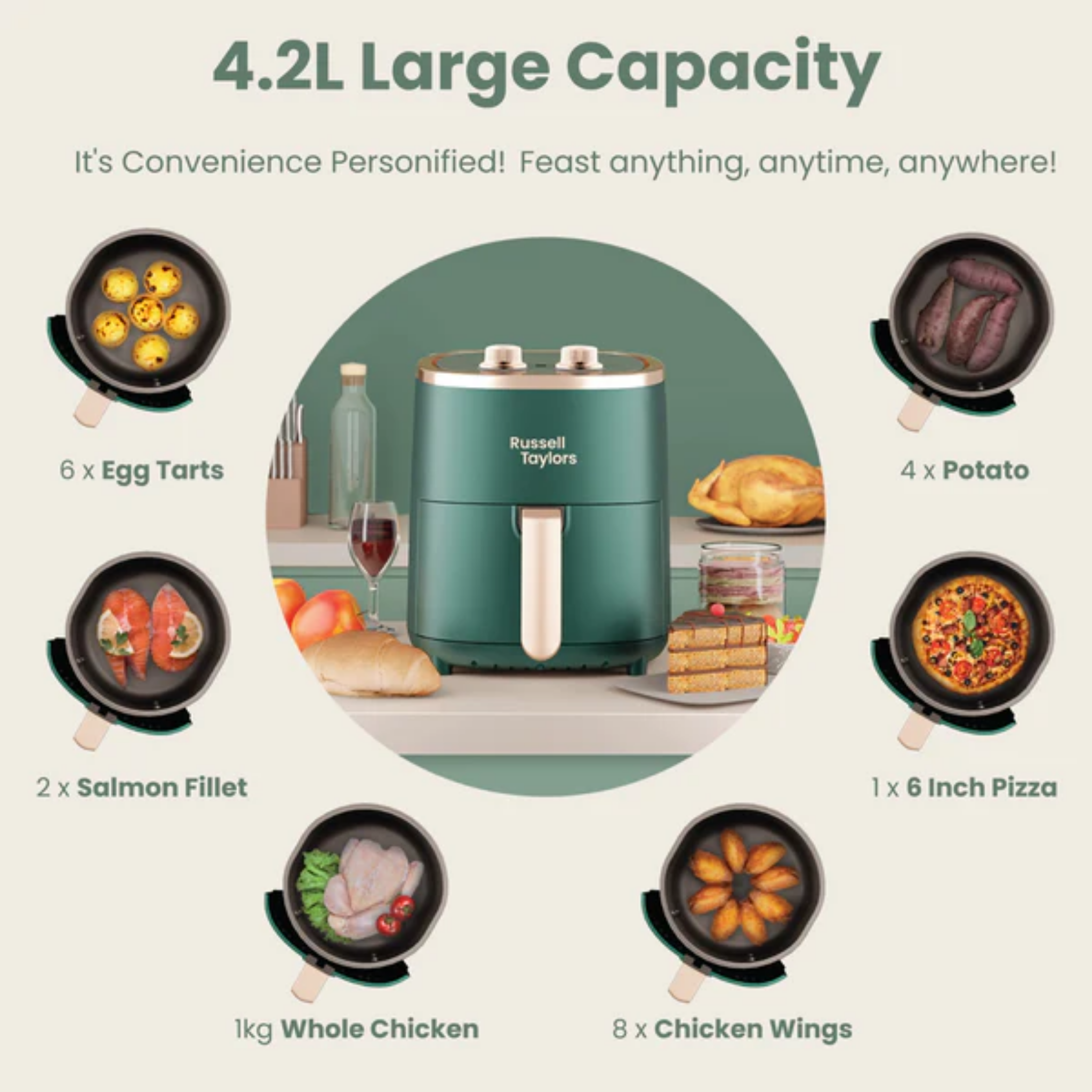 Buy Russell Taylors 4.2L Air Fryer (Z1) with simple dials. Features overheat protection & non-stick. Original 1 Year Warranty & best price. Shop now.