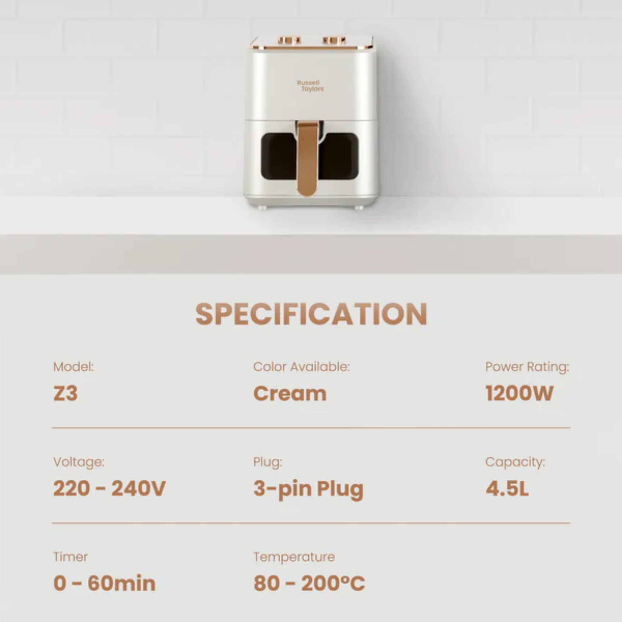 Buy Russell Taylors 4.5L Air Fryer (Z3) with compact window. Features easy monitoring & rapid air. Original 1 Year Warranty & best price. Shop now.