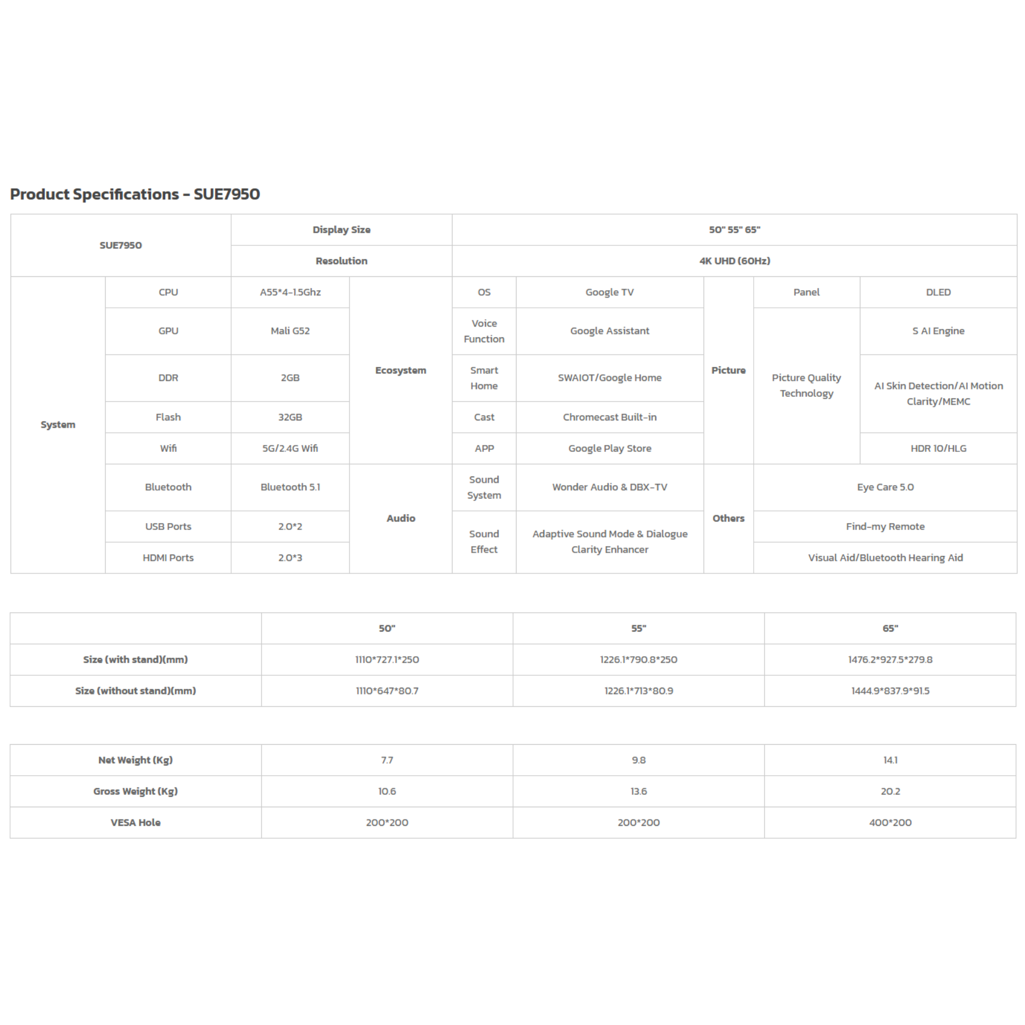 Buy Skyworth 55" 4K UHD Google TV (55SUE7950) with bezel-less design. Features HDR10 & Dolby Audio. Original 2 Years Warranty & best price. Shop now.