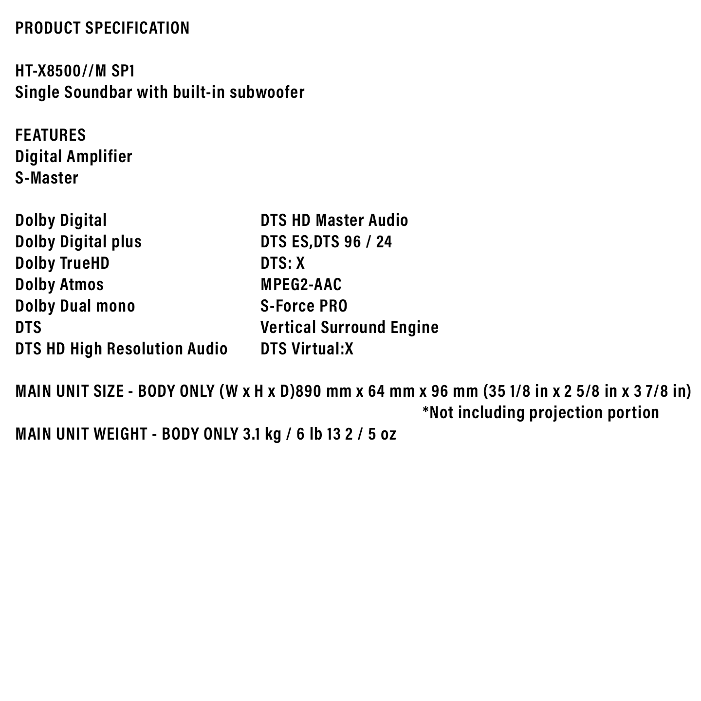 Buy Sony 2.1ch Soundbar (HT-X8500) with 3D surround sound. Features built-in subwoofers & Dolby Atmos/DTS:X. Original 1 Year Warranty & best price. Shop now.