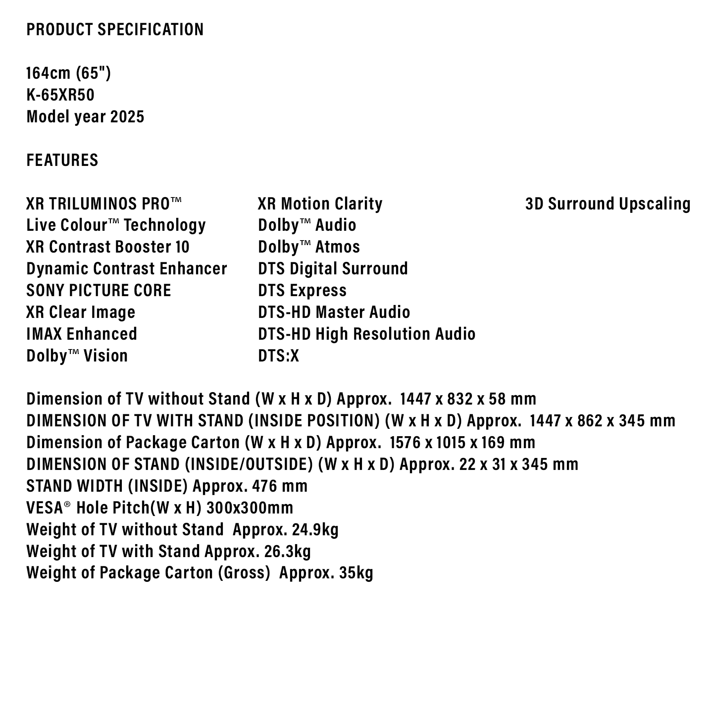 Buy Sony 65" 4K HDR Google TV (K-65XR50) with intelligent processing. Features XR Processor & acoustic audio. Original 2 Years Warranty & best price. Shop now.