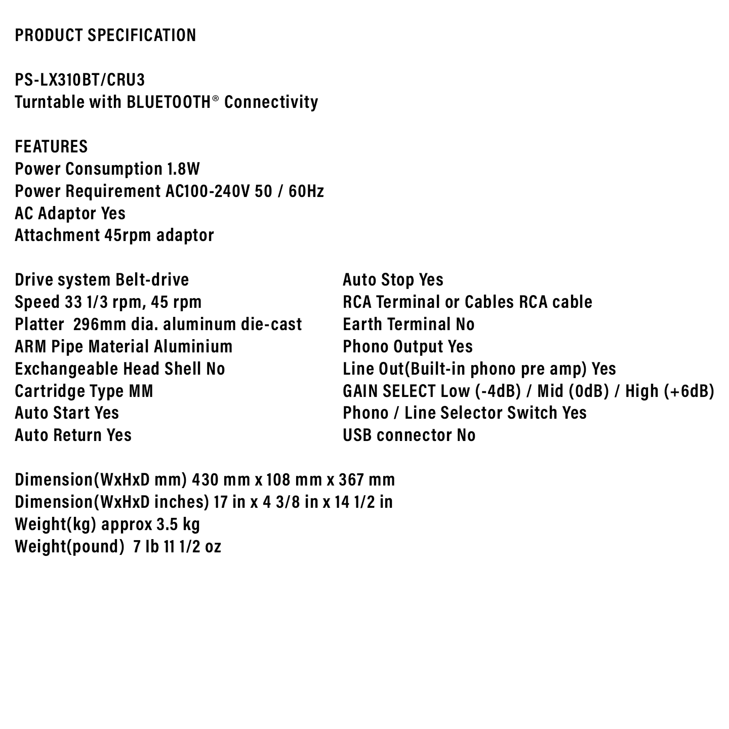 Buy Sony Bluetooth Turntable (PS-LX310BT) with wireless vinyl audio. Features one-step auto playback & aluminum arm. Original 1 Year Warranty & best price. Shop now.