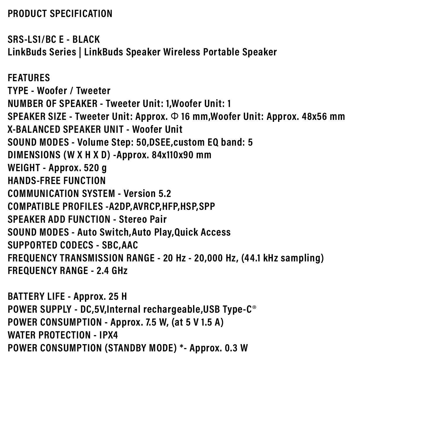 Buy Sony LinkBuds Wireless Speaker Black (SRS-LS1) with seamless connectivity. Features Auto Switch & 25hr battery. Original 1 Year Warranty & best price. Shop now.