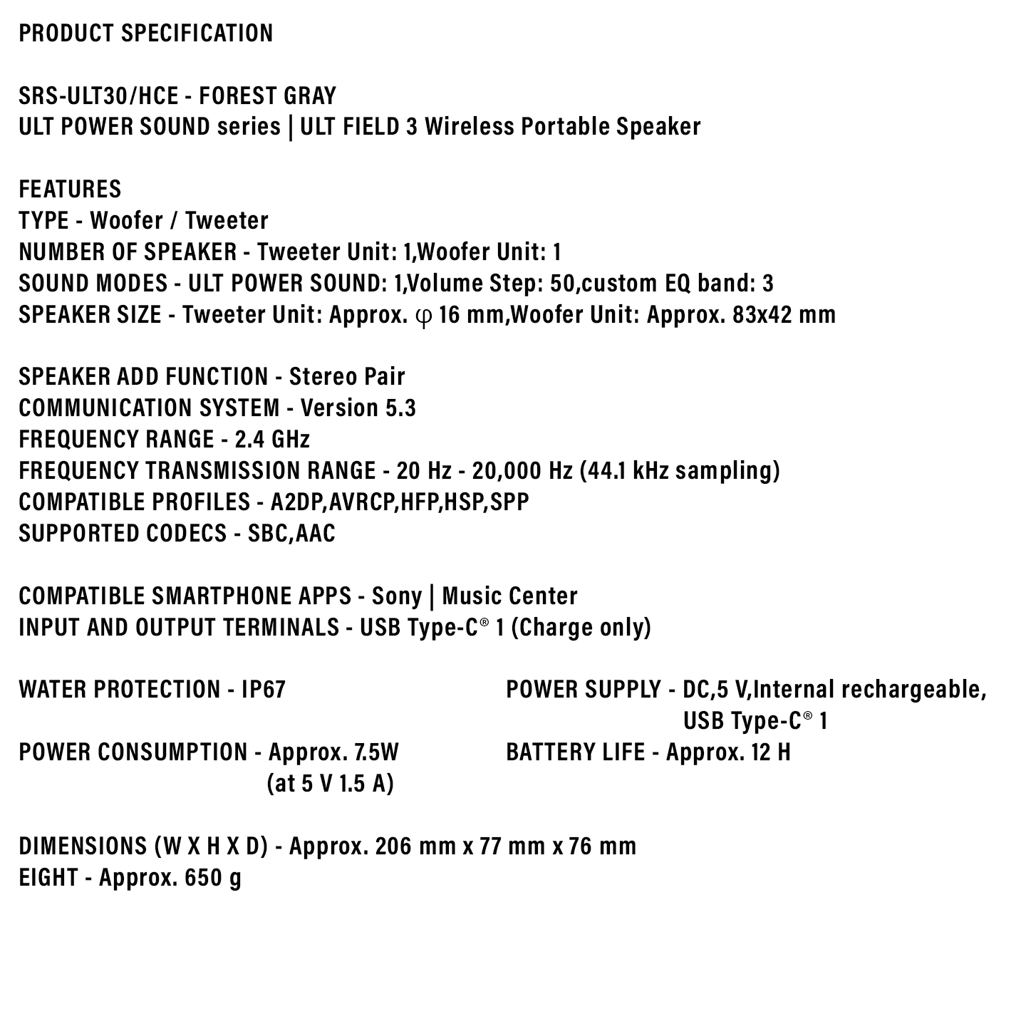 Buy Sony ULT Field 3 Speaker Black (SRS-ULT30) with powerful ULT bass. Features X-Balanced Unit & long playback. Original 1 Year Warranty & best price. Shop now.