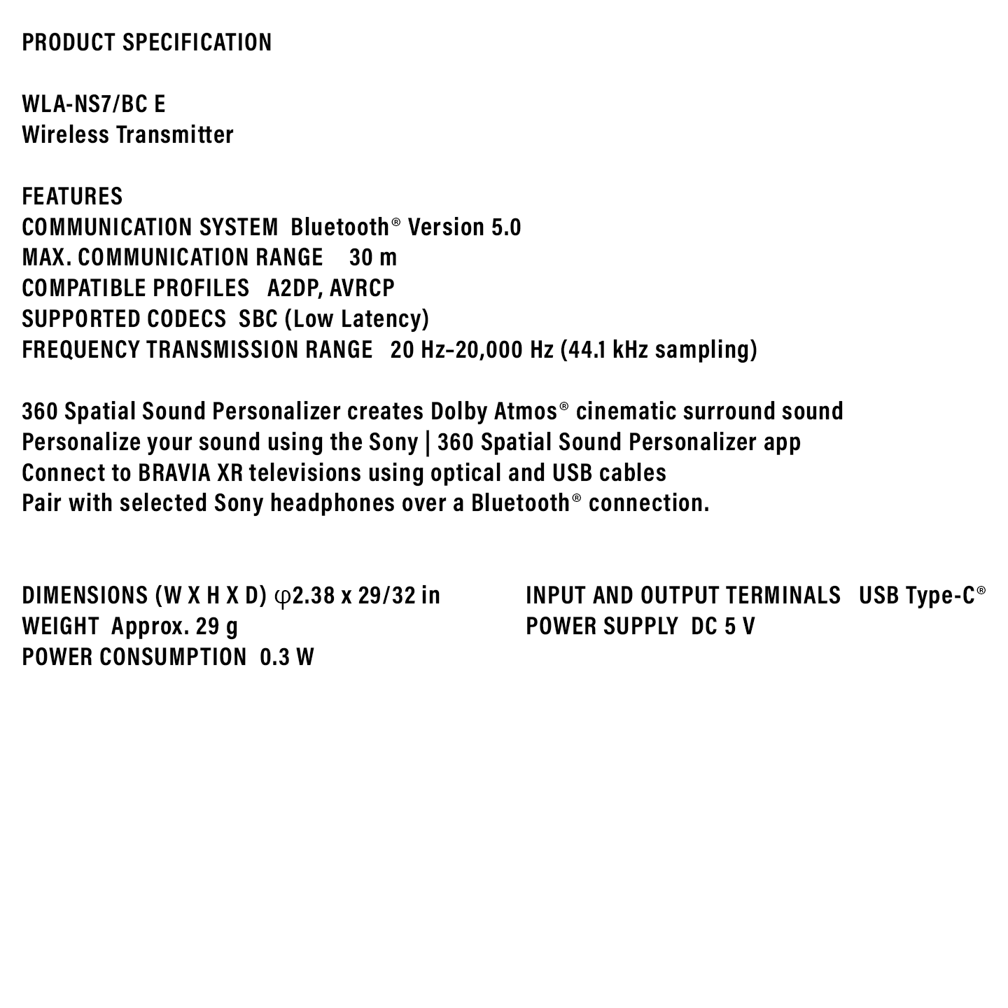 Buy Sony Wireless Transmitter (WLA-NS7) with synced TV audio. Features 360 Spatial Sound & low latency. Original 1 Year Warranty & best price. Shop now.