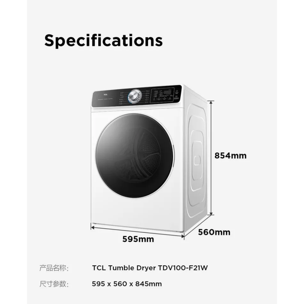 TCL 10.0KG VENTED DRYER TDV100-F21W