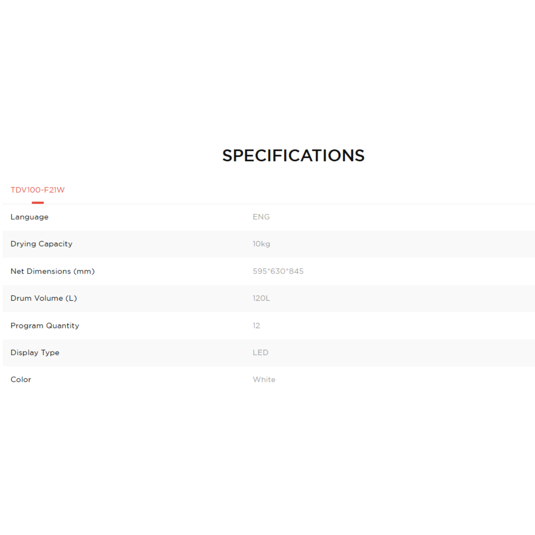 • 12 Drying Programs including Air Dry and Freshen Up.