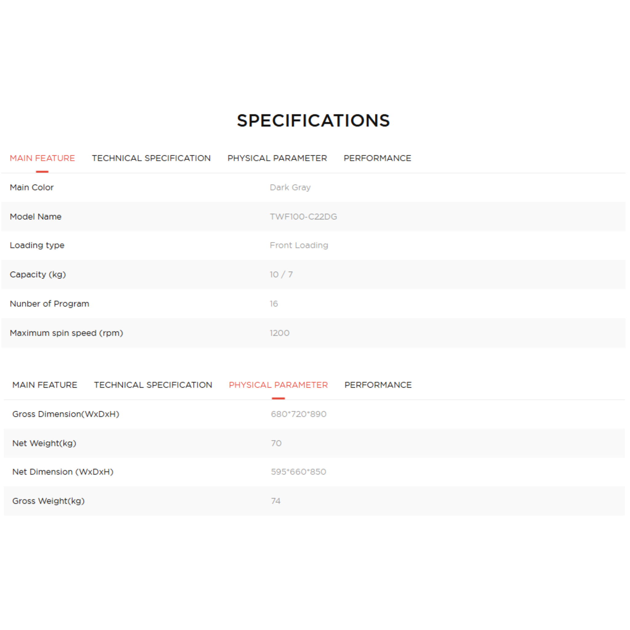 - Washing Capacity: 10KG