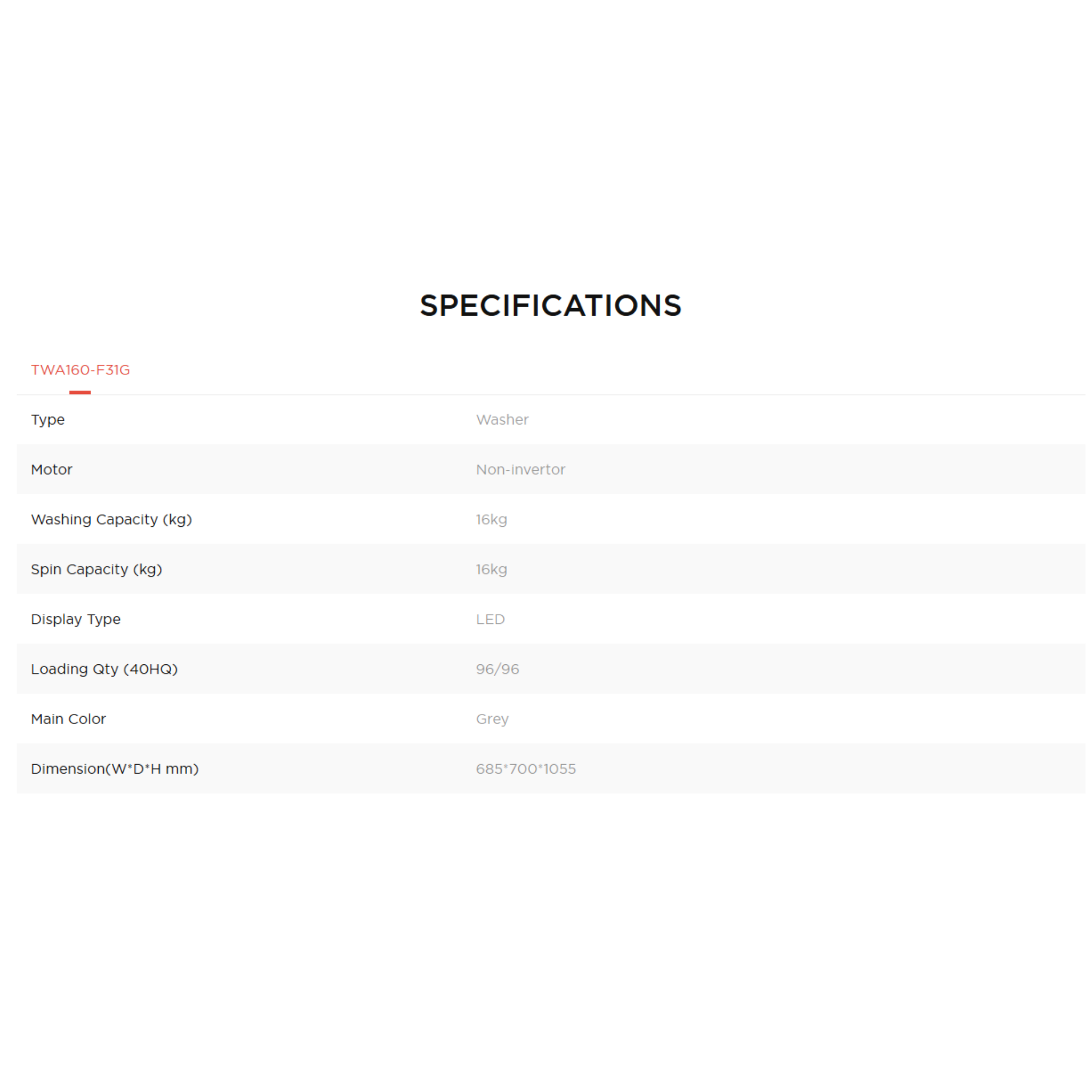 TCL 16KG Top Load Washing Machine TWA160-F31G