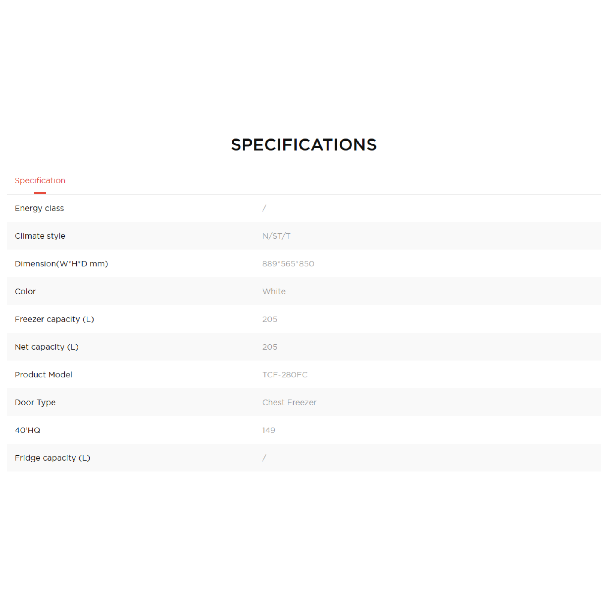 TCL 208L Chest Freezer TCF-280FC