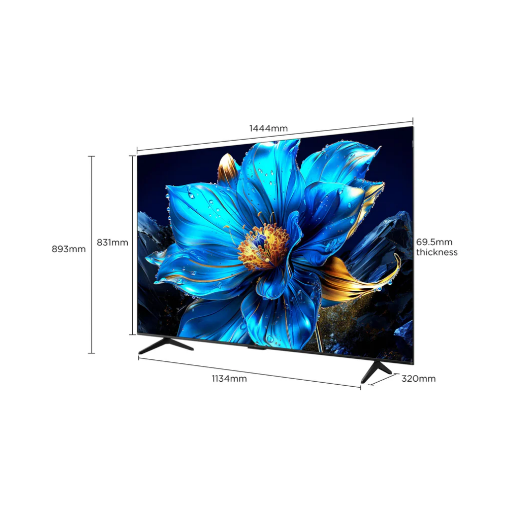 • 65-inch 4K UHD QLED Display. • Wide Color Gamut (93% DCI-P3). • Google TV with Google Assistant. • Dolby Vision & Atmos. • MEMC motion smoothing technology. • **Warranty:** 2 Years General Warranty.