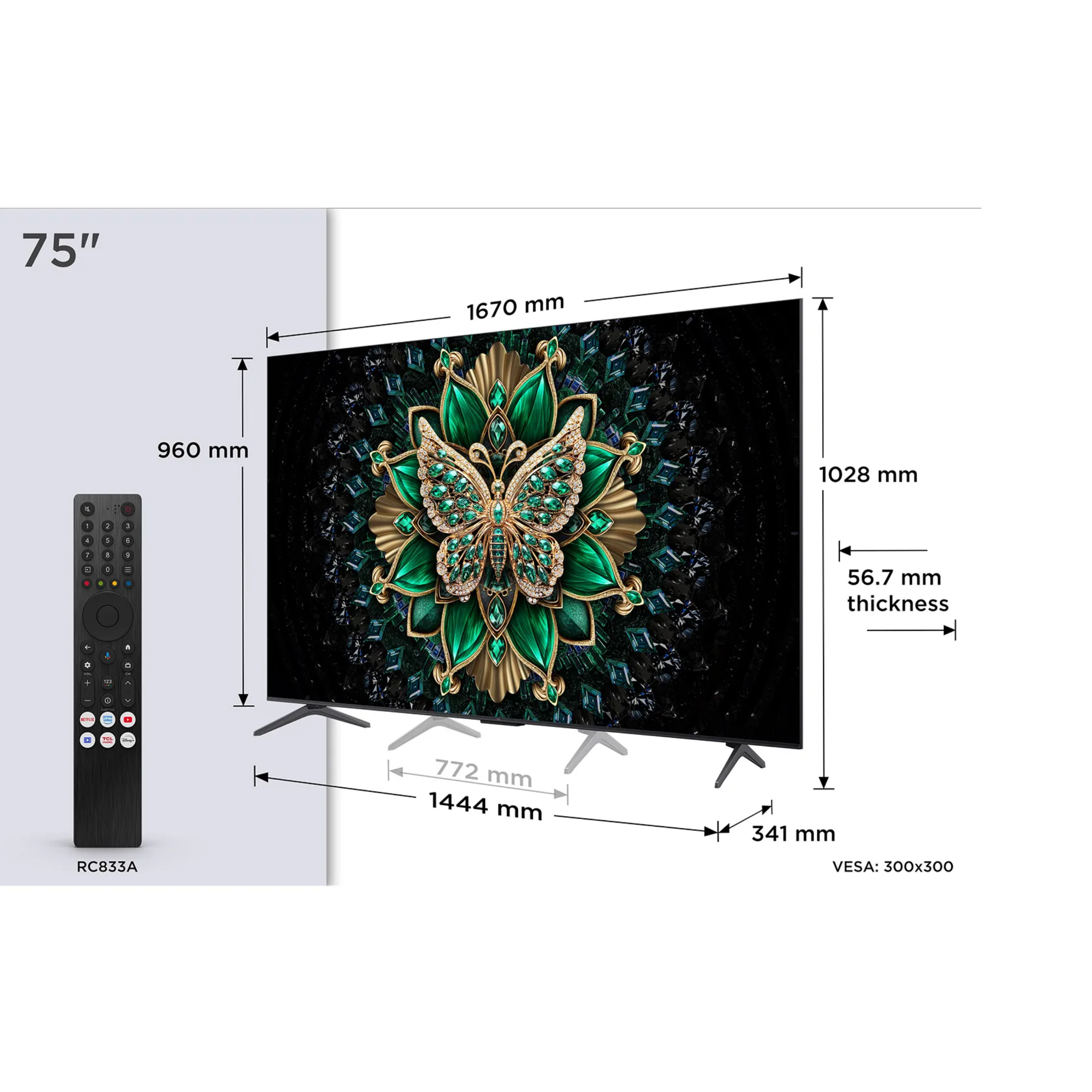 TCL 75 inch QDMINILED TV 75C6K Features: - Series: QDMINILED TV - QD-MiniLED - Precise Dimming Zones - HDR1000nits - 144HzPanel - 288Hz VRR - Onkyo 2.1 Sound - AiPQ Pro - Processor Warranty: 3 Years