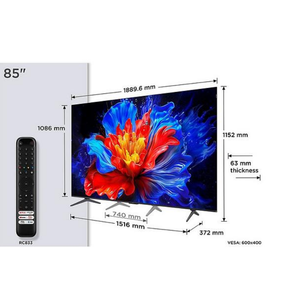 • 85-inch QLED 4K Display. • 144Hz VRR for superior motion clarity. • Google TV smart platform. • Features Dolby Vision & Atmos. • Game Master mode for gaming optimization. • **Warranty:** 2 Years General Warranty.