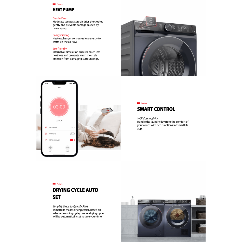 TOSHIBA 10.0KG HEAT PUMP TUMBLE DRYER TD-BP110GHM(MG)