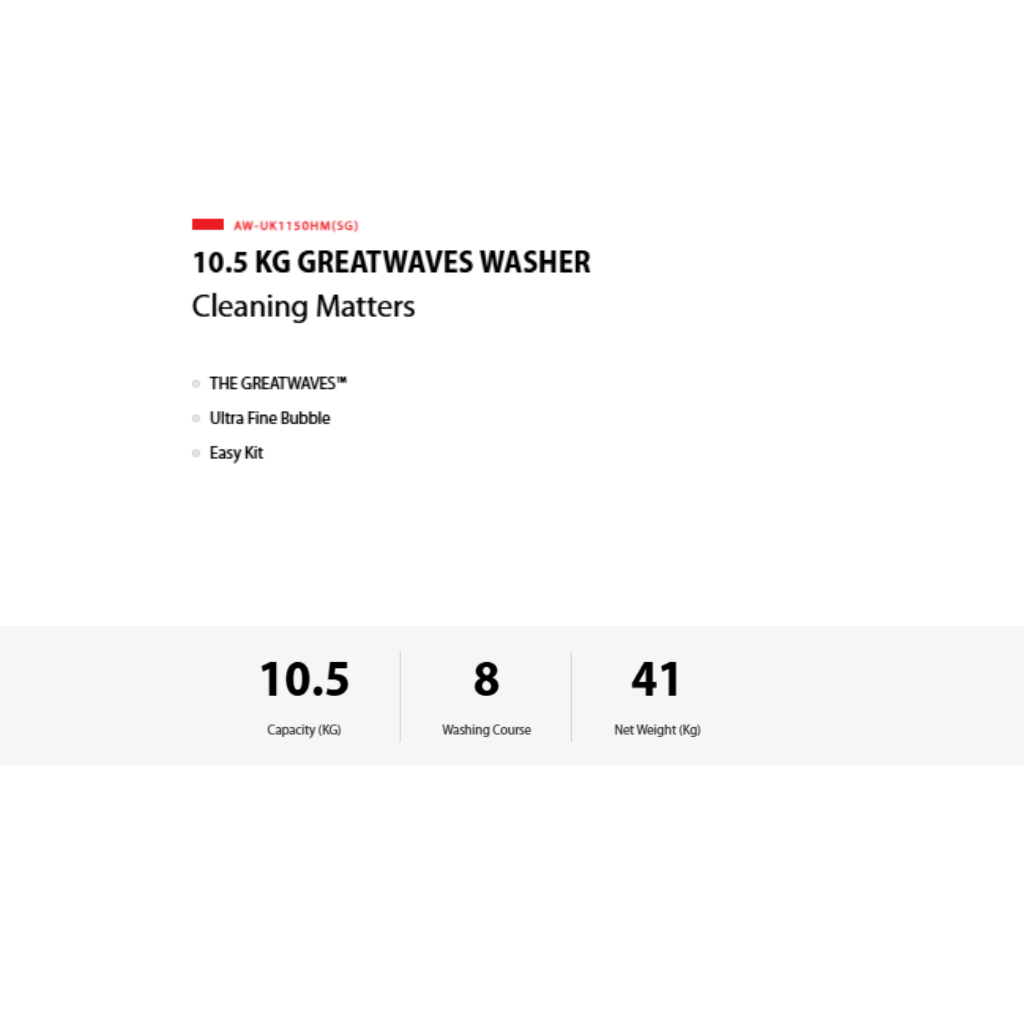 • THE GREATWAVES™ • Ultra Fine Bubble • Easy Kit • I Clean • No Angular Design • 8 Washing Course • Soft Closing Lid
