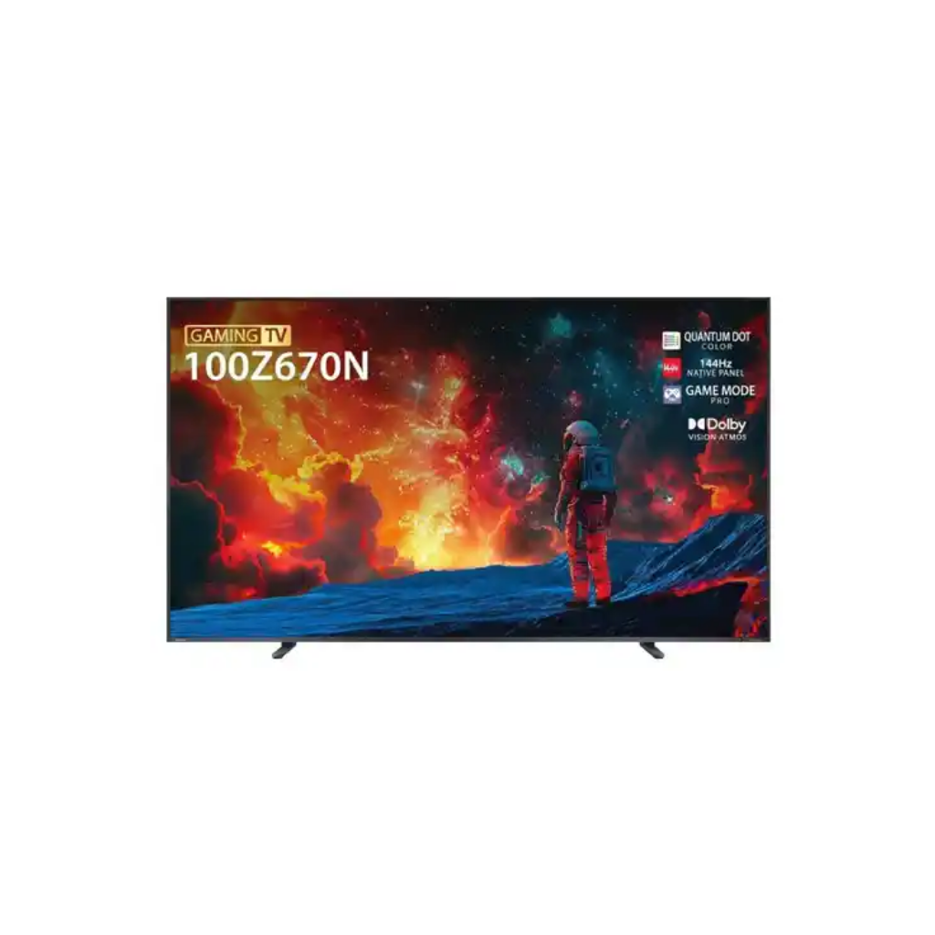 • Screen: 100-inch 4K UHD. • Features: Full Array Local Dimming, 144Hz Native Refresh Rate. • Warranty: 2 Years General Warranty.