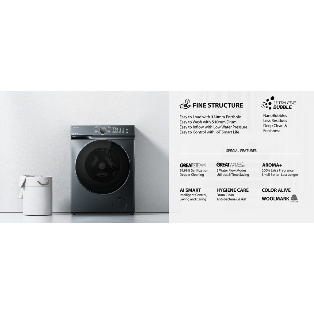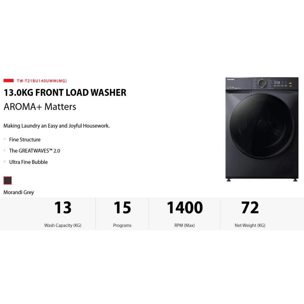 TOSHIBA 13.0KG THE GREATWAVES™ 2.0 FRONT LOAD WASHER TW-T21BU140UWM(MG)