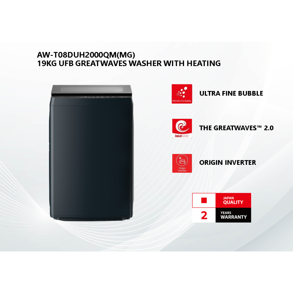 TOSHIBA 19.0KG UFB GREATWAVES WITH HEATING TOP LOAD WASHER AW-T08DUH2000QM(MG)