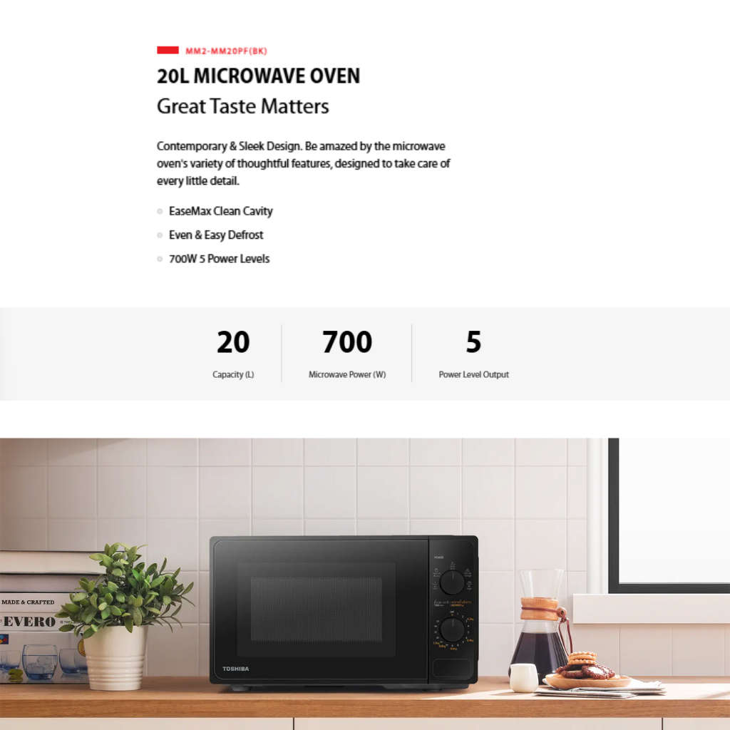 TOSHIBA 20L SOLO DIAL MICROWAVE OVEN MM2-MM20PF(BK)