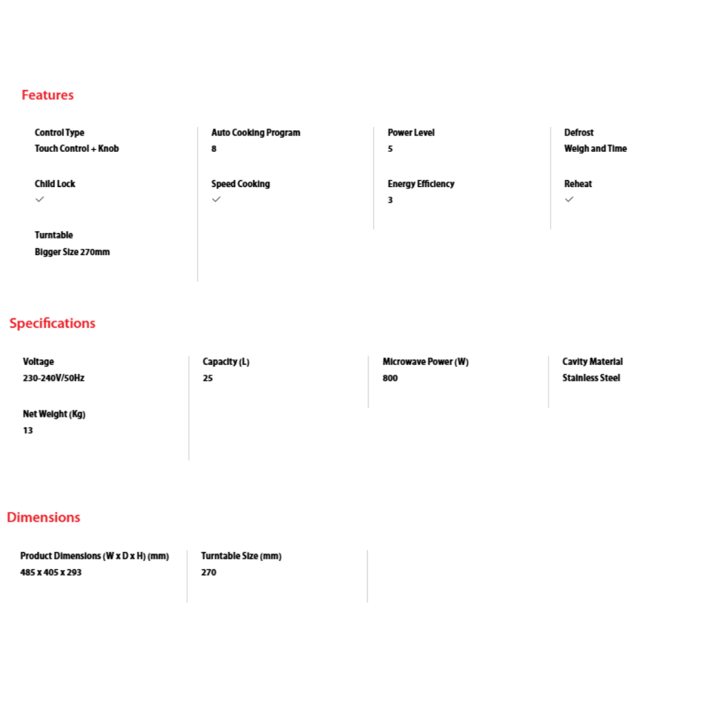 • Capacity: 25L. • Features: Digital Control, Easy Clean. • Color: Black. • Warranty: 1 Year General Warranty.