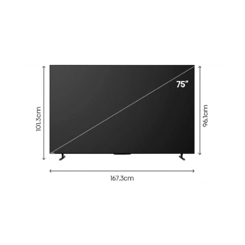 • Screen: 75-inch 4K QLED. • OS: Google TV. • Features: Full Array Local Dimming, REGZA Engine ZR. • Warranty: 2 Years General Warranty.