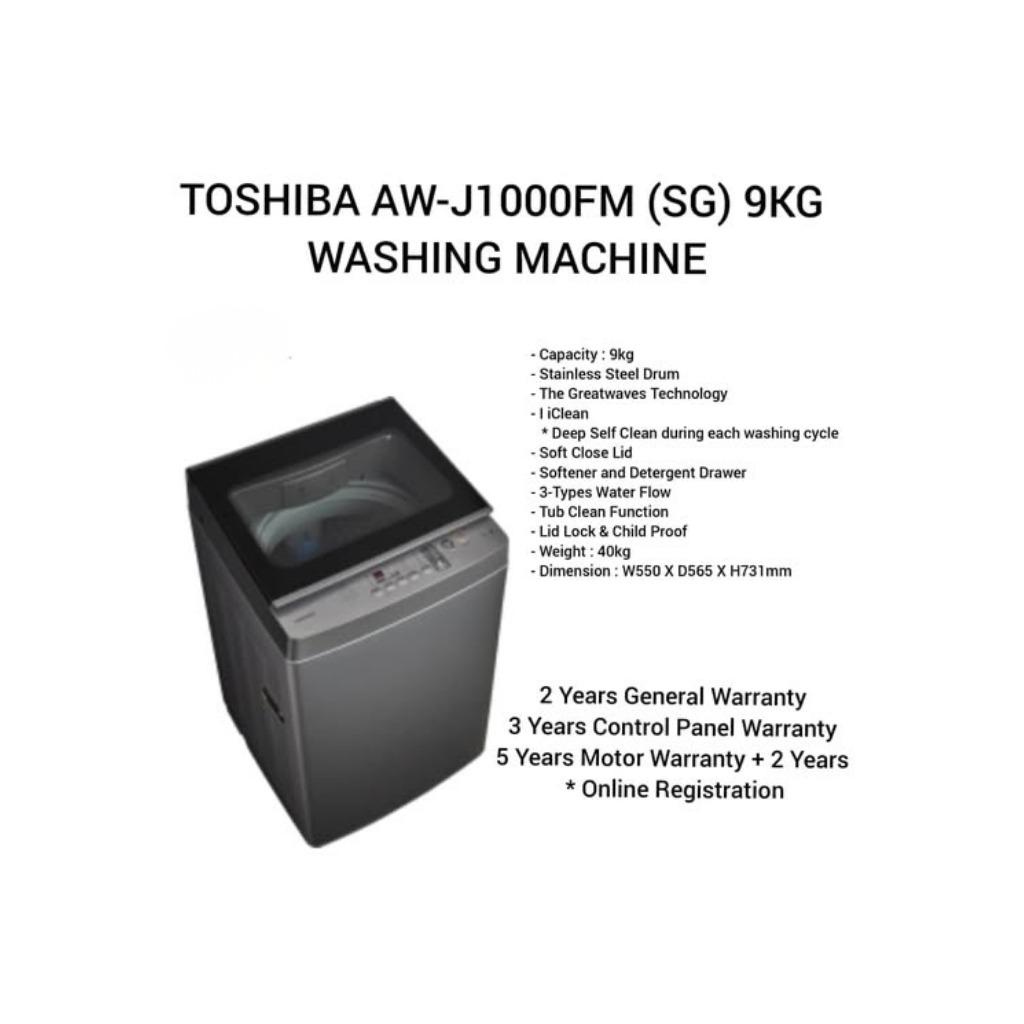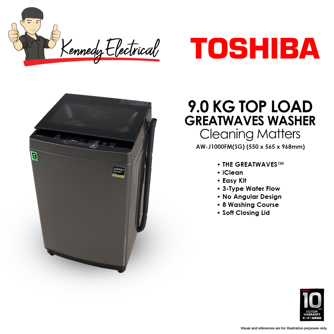 TOSHIBA 9.0 KG TOP LOAD GREATWAVES WASHER Cleaning Matters AW-J1000FM(SG)