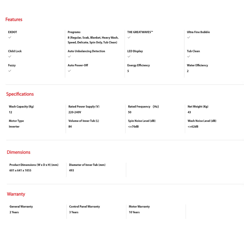 • ORIGIN INVERTER • The GREATWAVES™ • Ultra Fine Bubble • EXDOT STORAGE TANKS • EXDOT PRECISION DOSING SYSTEM • EXDOT INJECTION STRUCTURE (1 Press 1 Load) • MAGIC FILTER PRO • ORIGIN INVERTERLONG-LASTING FRAGRANCE • TUB CLEAN • UNIQUE DOOR LOCK